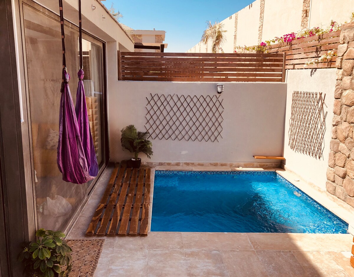Amazing and Unique in Hurghada, family friendly holiday home or a romantic get away for honeymooners with a large private swimming pool only for you,nothing is shared Spacious livingroom, with open kitchen and toy corner Up, Master bedroom ensuite with shower and a bedroom with kingbed, bunkbed and a Playstation5 Bathroom to fully relax with a big Jacuzzi The villa is fully eqiuped with all what you need We will be honored to welcome you and make your stay amazing and arrange trips for you