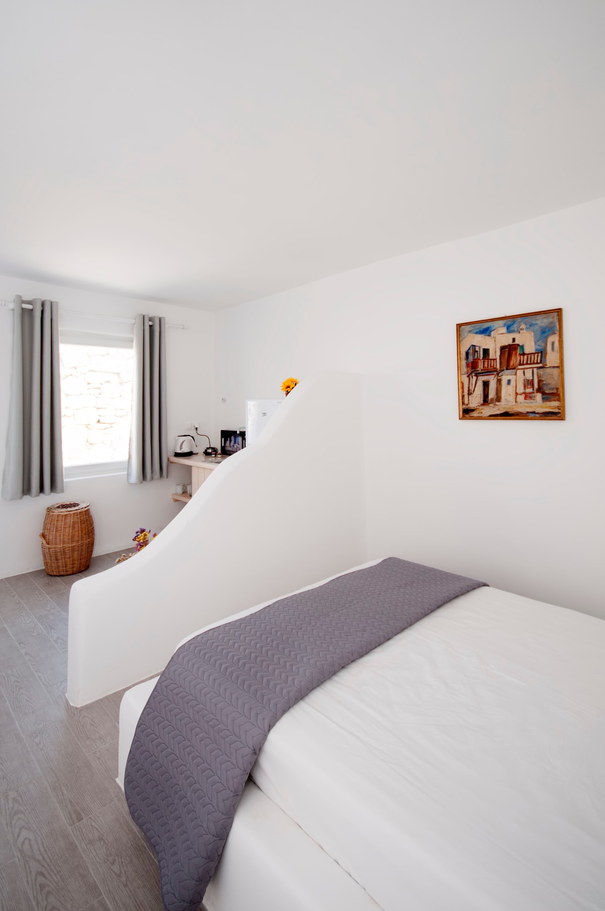 The Petite Boutique Suite is a beautiful suite apartment of 27 m2 interior and 4,3 m2 balcony, which can accommodate up to 2 guests. The petite boutique suite is ideal for couples and offers beautiful sunset views. For larger groups, the Petite Boutique Suite can be rented along with the orange apartment. The Petite Suite is air-conditioned and includes: -Daily maid service -Daily towel change -Linen change every three days -A sitting area , Fridge, -Espresso and cappuccino maker, -Utensils and crocke -Closets -Free Wi-Fi internet bathrobes a 21' satellite TV set with European channels and CNN 2 baths with showers a HiFi / CD player a DVD player Safe deposit box Parking area An iron and an ironing board In order to make your vacations on Mykonos Island as comfortable and enjoyable as possible, Mykonos Apartments Xydakis also provides car rental services. Choose from our wide range of small, medium and large cars and truly experience the spectacular island of Mykonos , in a safe and carefree manner. We will be glad to provide you with: Laundry service * Transfer service by appointment * (*) = additional charge