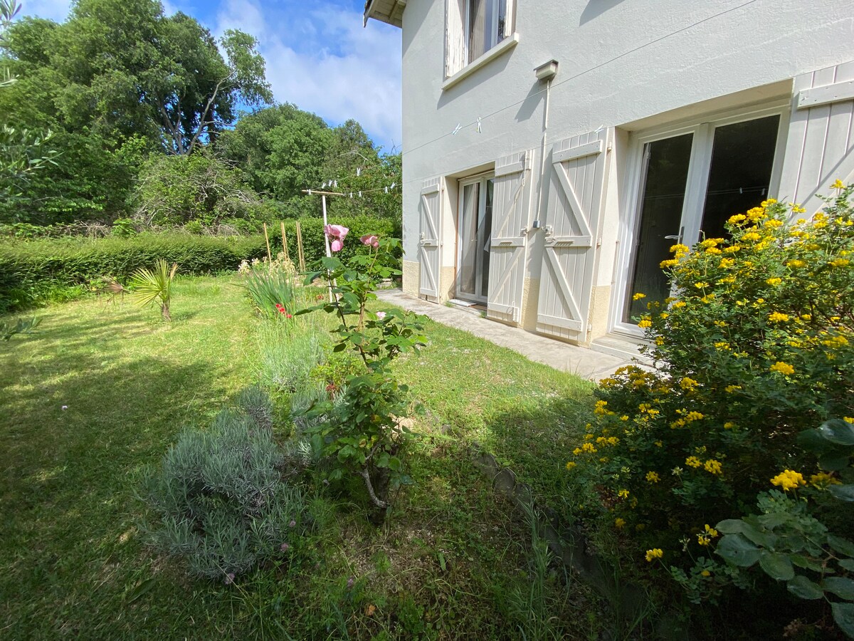 Pigeonnier T2 indépendant au coeur d'une villa partagée Au RDC : - d’une entrée avec espace bureau - d’une cuisine équipée, espace repas & salon - une salle d’eau (lavabo, douche à l’italienne) A l’étage : - une chambre avec lit 160X190 accès direct sur terrasse privative - parking privé partagé et portail électrique