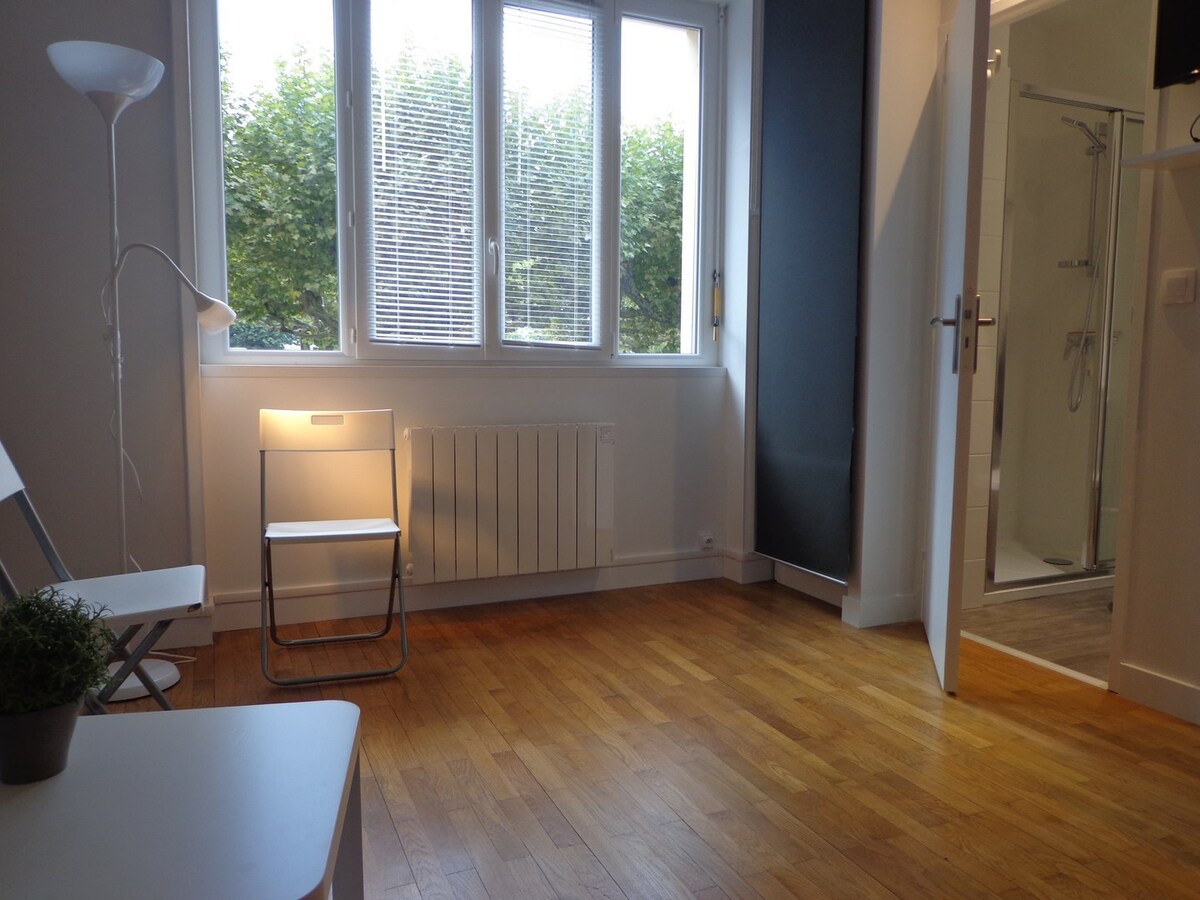 Studio centre-ville, 5 mn de la gare à pied, parking gratuit gare. Très bonne prestation, super équipé, refait entièrement à neuf, au RDC, fond de cour au calme et sécurisé. Couchage 2 personnes, 1 vrai lit queen size matelas à mémoire de forme. Appart non-fumeur. Arrivée entre 15h et 19h. Possible d’arriver en dehors de ces horaires mais avec un supplément. SDB : Douche italienne 120x70 Toilettes séparées. Chambre : Lit 160x200, TV 50’’ Placard de rangement, Fenêtres avec volets électriques.