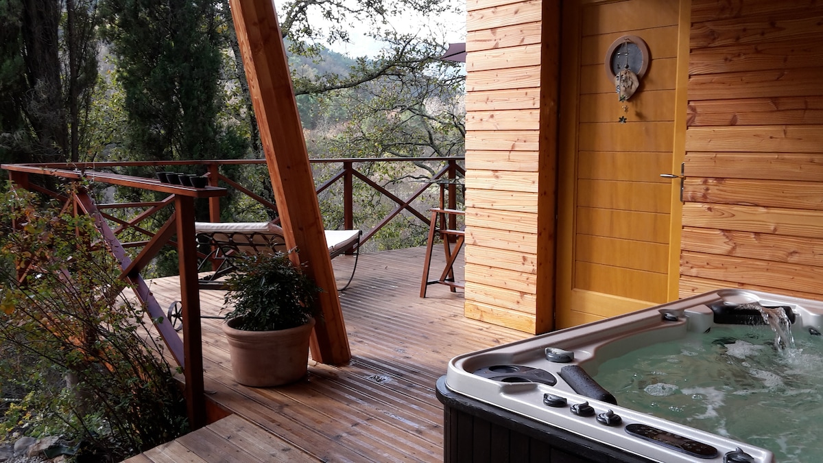 INSOLITE!! Parce que vous serez au seul endroit de la région PACA avec personne à 500 mètres autour de vous!! Laissez-vous surprendre par notre incroyable Lodge en bois et sa terrasse avec vue panoramique, son jacuzzi 2 places , sans vis à vis. Situé à 20 min de la mer ( Nice , St Laurent du Var) et 1 h du Mercantour et des stations de ski. Notre département possède une multitude de balades à pied de canyons de lacs et une multitude de villages pittoresques