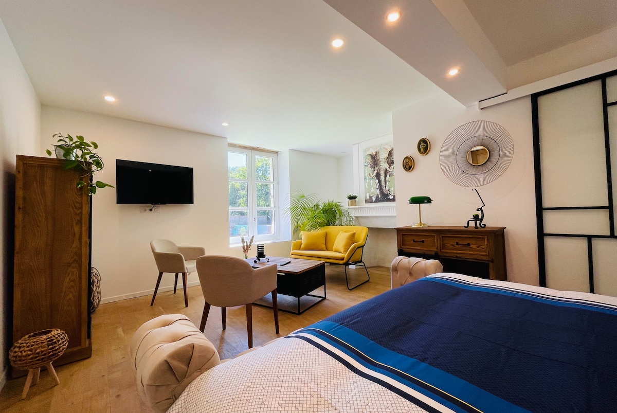 Une escapade unique et romantique au coeur d' Amboise ,sur les bords de Loire ,un espace atypique et authentique (creusé dans la roche au 16 ème siécle ) à la décoration design et à l' equipement moderne. Dans un esprit loft sur plusieurs niveaux : La salle de bain et sa BALNEO/JACUZZI pour un maximum de détente à 2 . Le salon équipé d' une TV connectée 65 pouces et barre de son performante. L 'espace nuit et son lit design pour une nuit confortable et enfin le coin repas .