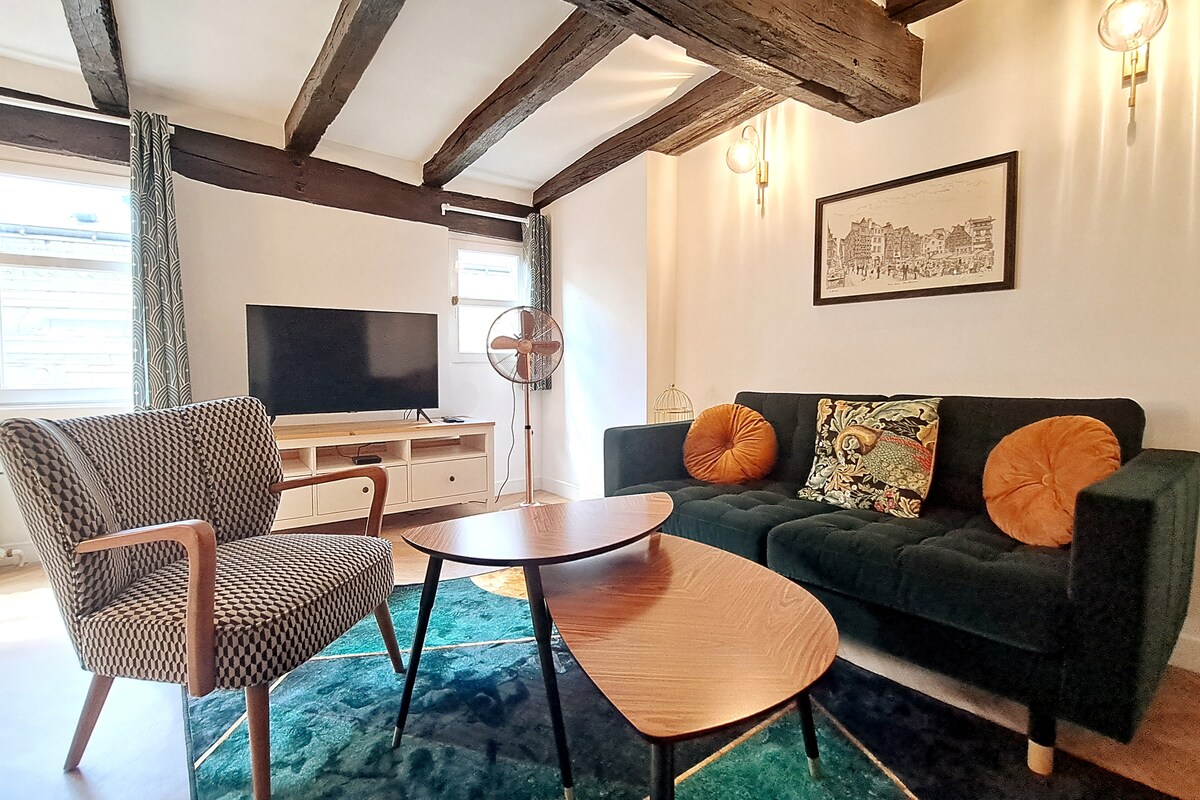Envie d’un séjour au cœur de l’histoire tourangelle ? Cet appartement entièrement rénové allie authenticité et élégance contemporaine. Situé dans une rue piétonne du centre historique, il offre une vue privilégiée sur un site gallo-romain et un confort raffiné. Son emplacement central en fait un pied-à-terre idéal pour découvrir la ville, explorer les Châteaux de la Loire ou séjourner lors d’un déplacement professionnel.
