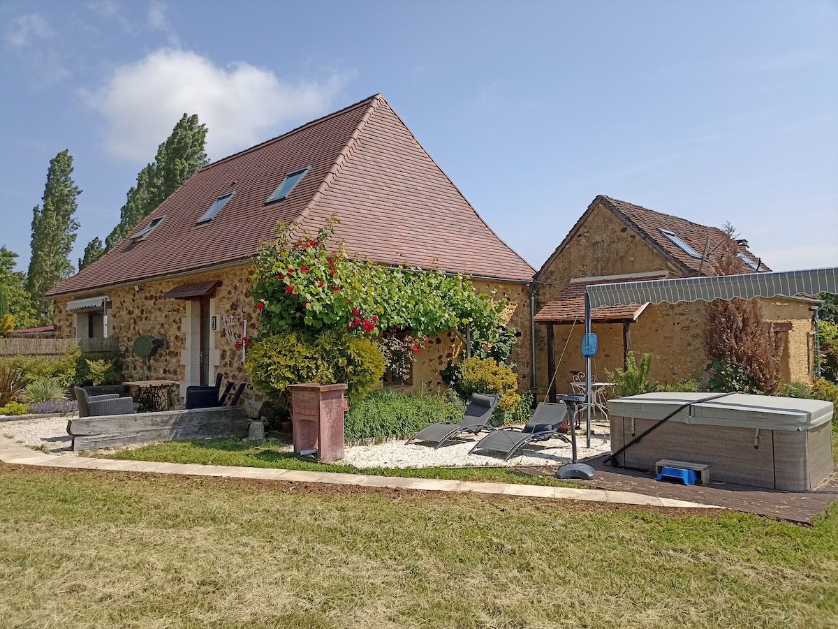 Maison indépendante sans vis-à-vis, en pierres située dans ancien hameau. Ce logement confortable vous séduira par sa décoration soignée ,son SPA privatif sera apprécié aprés de longues visites,son emplacement pour explorer Sarlat, les beaux villages,la vallée de la Dordogne, ses châteaux et tous les sites incontournables. Deux terrasses à votre disposition pour savourer un bon repas en plein air ou se détendre sur les transats. Eau du SPA changée aprés séjour. Piscine à partager propriétaire.