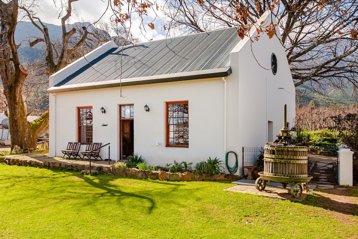 Klaasvoogds Cottage, 90m2, minimally affected by loadshedding, offers a charming, luxurious self-catering cottage on a working farm. It has a gas stove, solar geyser and an inverter so TV, lights, fridge and wifi not affected at all. It is well-equipped for long stays, centrally located in the Robertson wine valley on route 62. Enjoy lovely views of the vineyards, orchards and moutains.