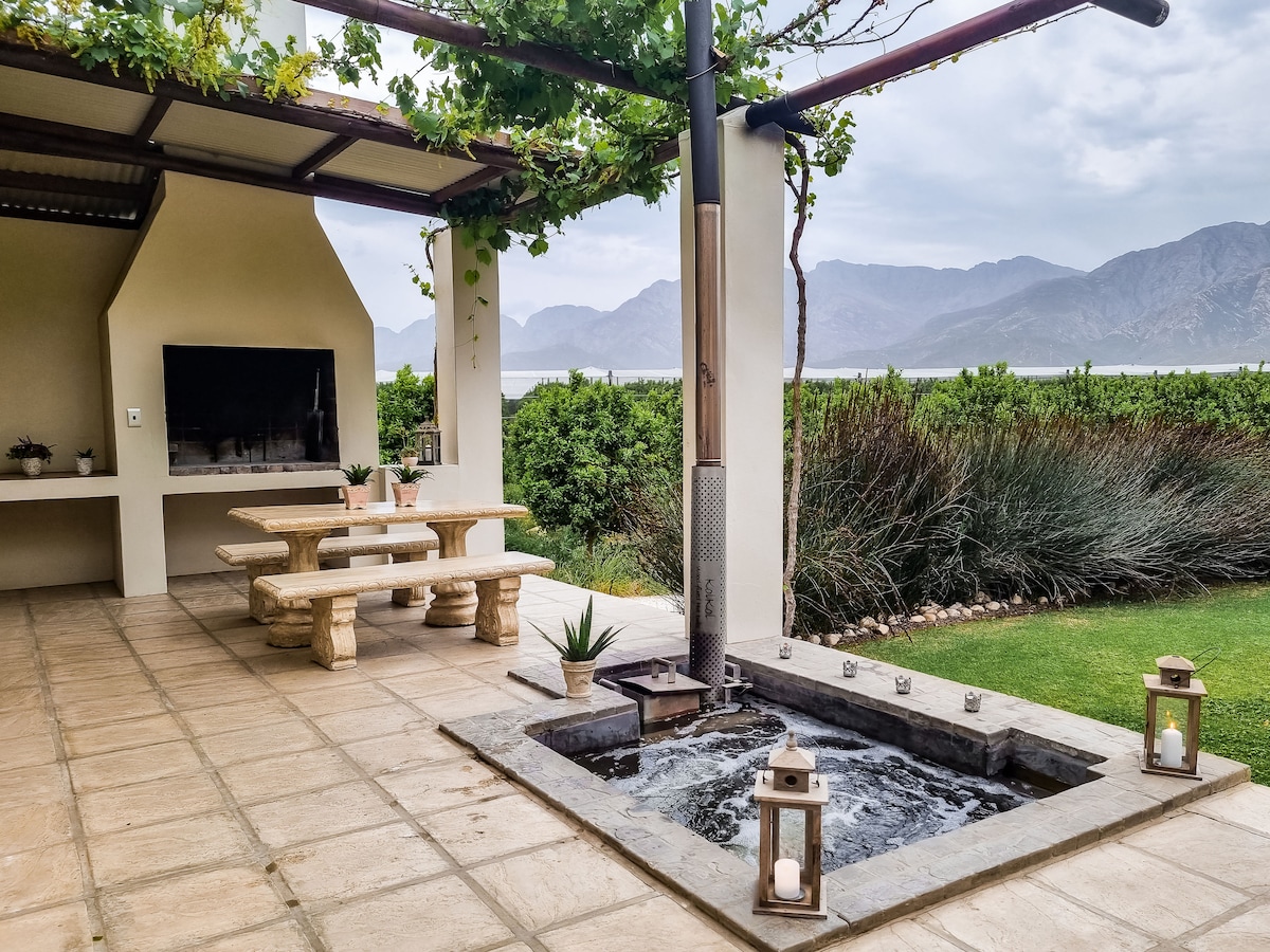 You'll love this unique and romantic escape on the farm ,nestled deep in the mountains of Pietersfontein (Montagu)with lovely mountain views from your hottub or a fireplace at night while touching the stars.This unique house is situated on a working farm where earth meets stars and life stops for a while.