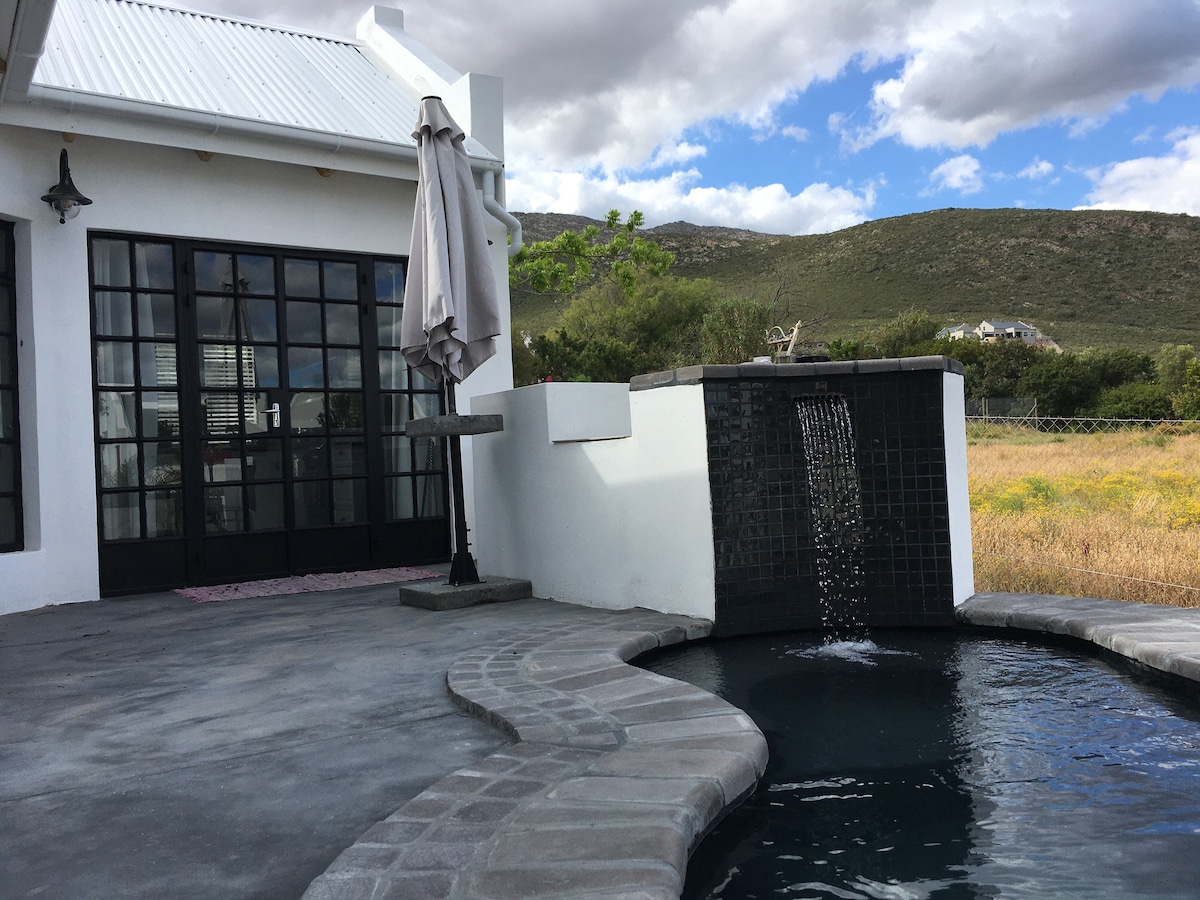 You won’t forget your time in this romantic, memorable place. Relax and rejuvenate with this beautiful cottage at the foot of the Langeberg mountains. Tastefully decorated and beautiful scenery. Enjoy an afternoon nap with views of the green fields and mountains. Definitely for nature lovers and people who loves the outdoors. Inverter with battery system to supply basic lights, WiFi and tv