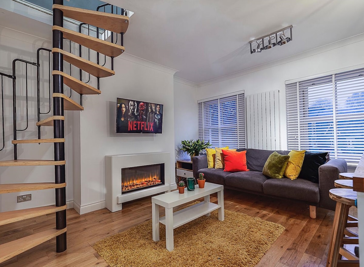 This newly refurbished studio has everything you need for a great stay in London: from free allocated parking directly in front of the property to a spacious bathroom, smart TV, and stylish ceiling lighting. The fully equipped kitchen includes a dishwasher and washing machine. The LED fireplace adds a unique, cosy touch, while the comfortable sofa is ideal for two guests. A dedicated workspace with a desk and office chair is also available.