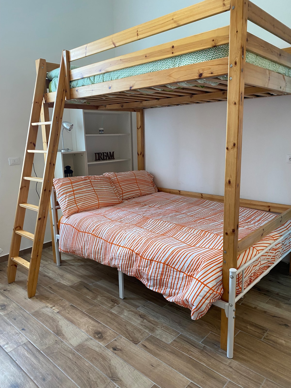 La stanza è arredata con due letti, un eventuale terzo letto ricavato da una poltrona-letto, un armadio, un mobile con mensole, una scrivania, televisore e scarpiera. La stanza è molto luminosa e i letti possono essere disposti anche singolarmente.