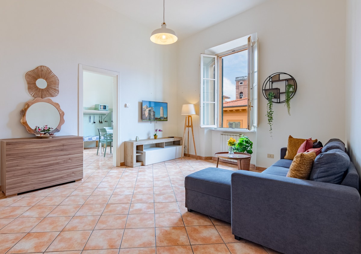 Appartamento open space nel cuore del centro storico vicinissimo alla Torre. L'appartamento viene spesso utilizzato anche per lunghe permanenze in quanto è completamente accessoriato e vicino ad Università, Scuola Normale Superiore, Scuola Superiore Sant'Anna, Ospedale Santa Chiara e Teatro Verdi. Si trova al primo piano e mezzo di un edificio senza ascensore, per raggiungerlo ci sono due rampe di scale abbastanza comode.