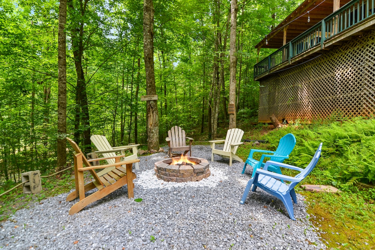 Vogal Park附近的Creekfront小木屋,带火坑