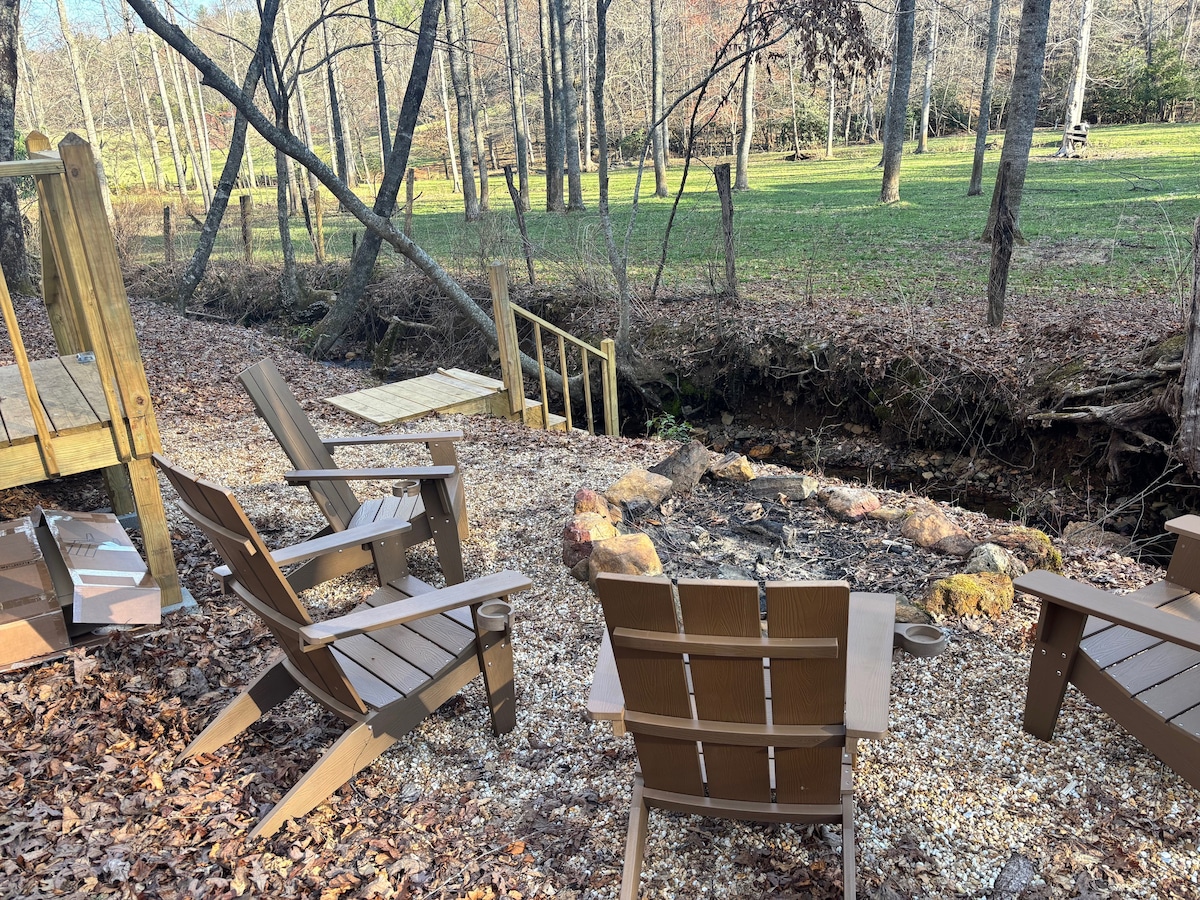 Our Creek House is private and wooded, located within walking distance of college sporting events. Bamboo Forest and creek walk to Cupid Falls are just across the bridge. Over 2000 square feet of living space, including two bedrooms, 2.5 bathrooms, fully equipped kitchen, and large downstairs den with fireplace and bar. Nice restaurants and sports bars are nearby. Lake Chatuge is only a five- minute drive. We live up the hill and are available to guests throughout their stay.