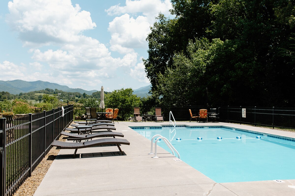 Beautiful top floor views of the Smokies! This is a studio loft condo with a fun layout to help you enjoy every moment. Enjoy direct views of the Smokies from the top floor and thoughtfully laid out with several nooks for you to enjoy. You'll have to make tough choices like choosing either coffee or wine while sitting on the deck, couch or lazing in bed. Relax and enjoy a meal at the dinette table. You'll have your own private wifi access, smart TVs+Netflix.