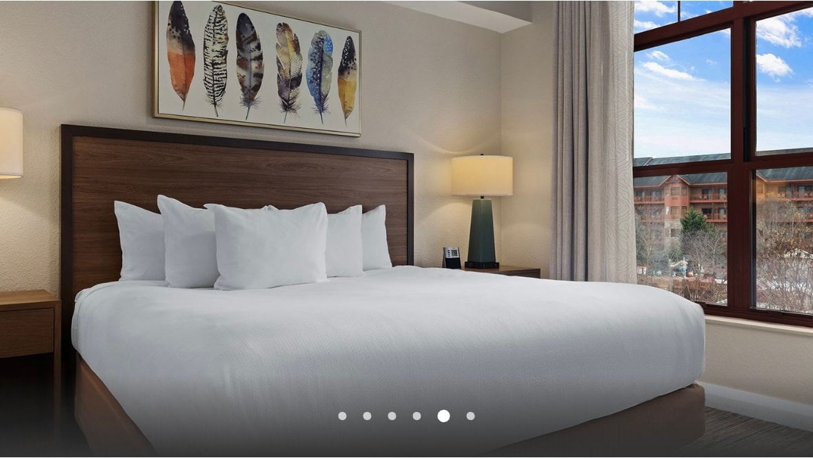 Nothing quite says “mountain escape” like a lodge. Even with the beauty and excitement of the Great Smoky Mountains outside, don’t be surprised if you get all your thrills right at this action-packed resort. Wyndham Great Smokies | 2BR/2BA Balcony King Suite • Size: 1271 - 1271 • Kitchen: Full • Baths: 2 • Accommodates: 8 Guests • Beds: Double Bed - 2 King Bed - 1 Queen Sleeper Sofa - 1