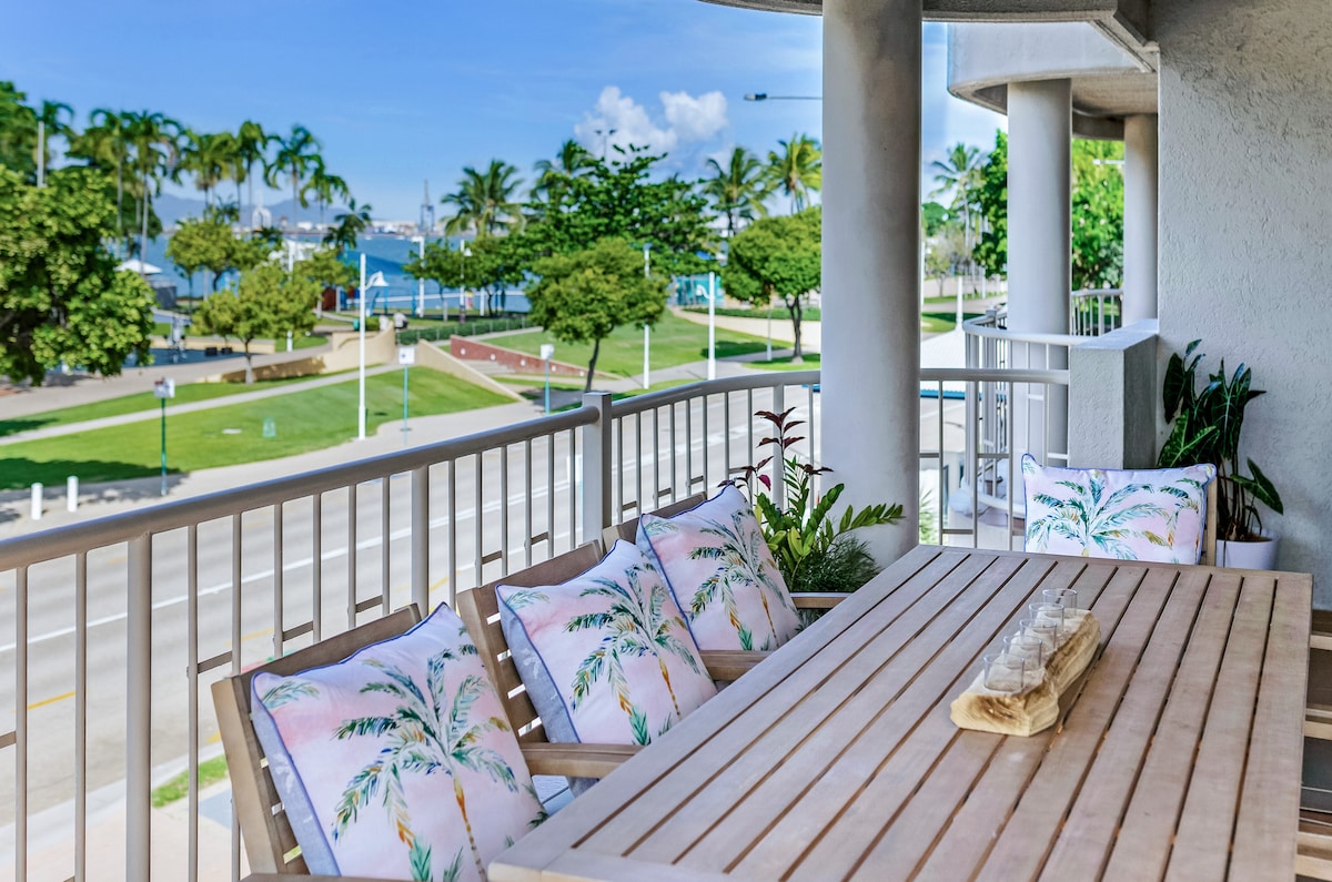 Stunning, spectacular, million dollar sea views, in beachfront apartment looking to Magnetic Island, the horizon and all along The Strand Esplanade. Watch and listen to the ocean from your apartment and fall asleep to the sound of waves. In the heart of the Strand Esplanade's cafes, restaurants, sightseeing and CBD. The airport and Magnetic Island ferry are less than 10 minutes taxi/uber/bus. Supermarket is less than 5 minutes walk. Free, safe carparking on site. Free wifi.