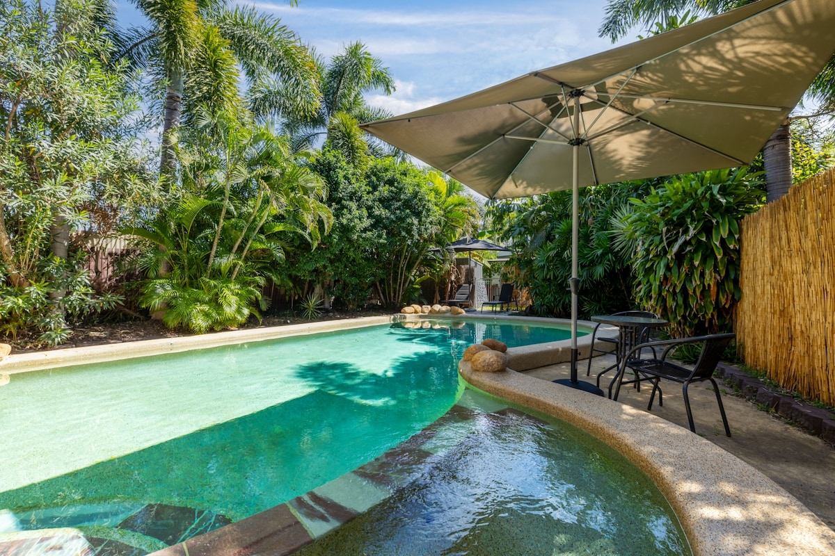 Escape to this stunning, newly renovated 3-bedroom Queenslander home, perfectly designed to offer a blend of classic charm and modern luxury. Whether you're planning a family vacation or a getaway with friends, this spacious property comfortably sleeps 6, making it the ideal base for group stays. Located in a peaceful neighborhood, it offers a private oasis with a gorgeous lagoon-style pool, high ceilings, and all the premium amenities you need for a relaxing and stylish retreat.
