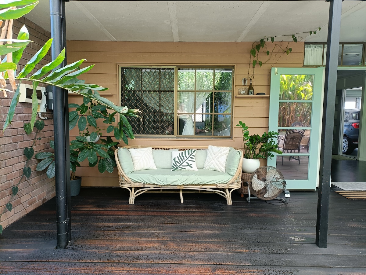 Our Granny Flat is a tranquil oasis, set high up in the palm trees overlooking our swimming pool. Lorikeets whizz by, butterflies cruise by and you'll hear the occasional train toot. We're located in a lovely suburb walking distance to the QCB Stadium, less than 10 min drive into the city and extremely popular Strand area and restaurants. The entire Granny Flat is yours with private access, kitchen and living area, separate bedroom with queen sized bed and ensuite with rain shower.