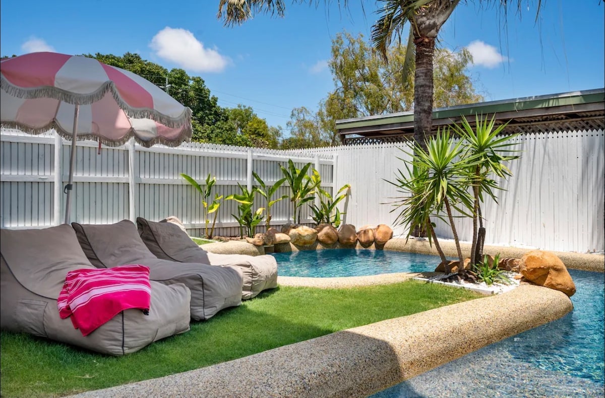 Escape to your own private slice of tropical Townsville. This spacious 3-bedroom Queenslander in West End combines relaxed indoor living with a private pool and covered outdoor entertaining area — perfect for families, couples, and longer stays. Spend your days cooling off in the sparkling pool, enjoying BBQ nights under the covered patio, or relaxing indoors in air-conditioned comfort. With two full bathrooms (including a convenient poolside bathroom), a fully equipped kitchen, secure covered