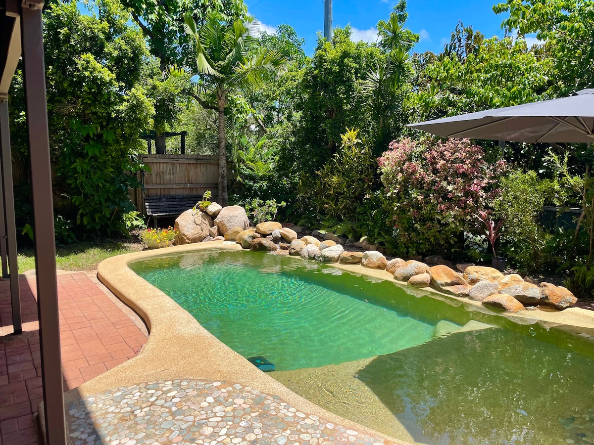 Take it easy at this unique and tranquil getaway. Self contained guest suite with a private patio and use of the shared pool. Local convenience store and cafe for coffee and breakfast and an easy 15 minute walk to the Strand for restaurants, cafes and bars. There is a launderette in walking distance. 5 minute walk to the beach to watch the sunset or sunrise at Rowes Bay or Pallarenda. Street parking. Shared pool cleaned weekly. This property is for adults only and is not pet friendly.