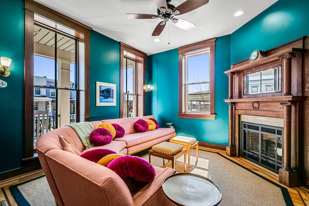 We've taken our 18 years of travel and love for creating memorable moments and developed the perfect stay for you. A hidden gem, nestled in the heart of Baltimore, this gorgeous newly-remodeled 7 BR, 4 Bath House has been updated with amenities such as a Built-in Bluetooth theater speaker system, a master suite with dual showers and freestanding tub, and plenty of natural lighting in our charming sunroom. Elevate your time away with a massage therapist, or special event!