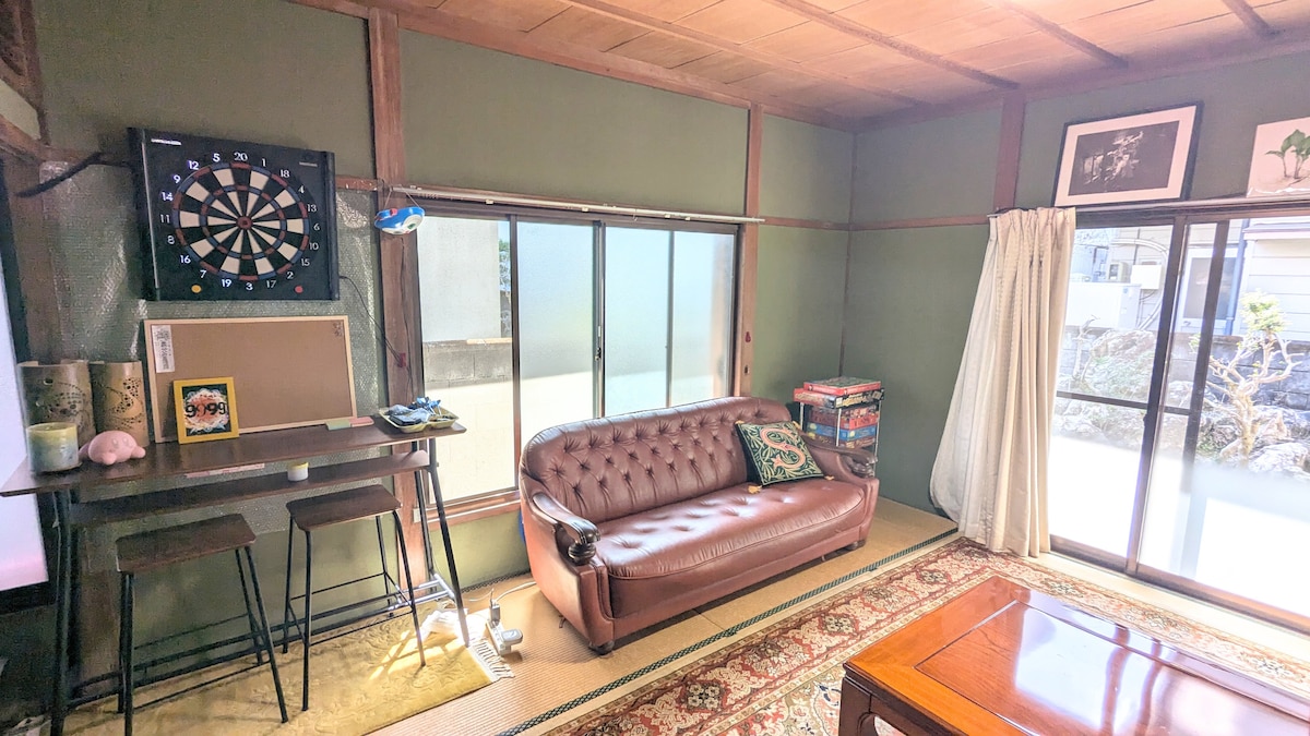 徳島県の最南端の町宍喰。海、山、川に近く、手つかずの大自然が残っている風光明媚な町です。国道の喧騒から少し住宅街に入った静かな地域に、この一棟貸しの宿があります。築100年余りの古民家に、おしゃれな内装を施し、この度生まれ変わりました。他のお客様に気兼ねする事なく、親しい間柄の方々とゆったりとした時間をお過ごしいただけます。広いキッチンでは、近くのスーパーで食材を仕入れ、お好きに料理も楽しめます。あえてテレビは置きません。静かに読書を楽しむもよし、お気に入りの音楽に耳を傾けるのも良いですね。ビーチまでは歩いて5分ほどです。サーフィンやSUP、スキューバダイビングで魚と戯れるも良し。昭和の香りが未だに残る、宍喰の町をそぞろ歩くのも良いかもしれません。過ごし方は人さまざま。快適な旅となるよう、ホストとしてサポート致します。