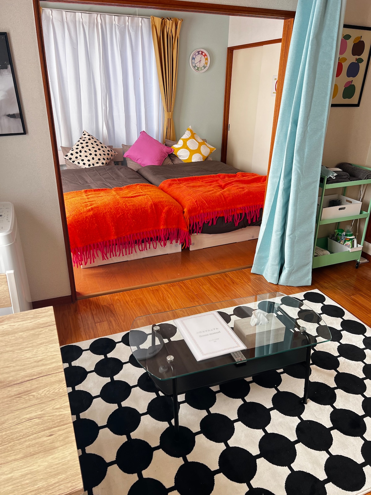 Very convenient location! It takes 12 minutes by subway from the nearest station to Odori Station、Downtown! It's a 5-minute walk from our room to the nearest station! There are some One pieces! 1. This room has a private bedroom, living room, toilet, and bathroom, and you won't share them with other guests! 2. Three single beds. 3. There is a microwave, induction cooktop, pot, and pan so you can cook in your room! 4. The nearest station is Nango-Jusan(13) Chome Station. 5. Wi-Fi is available!
