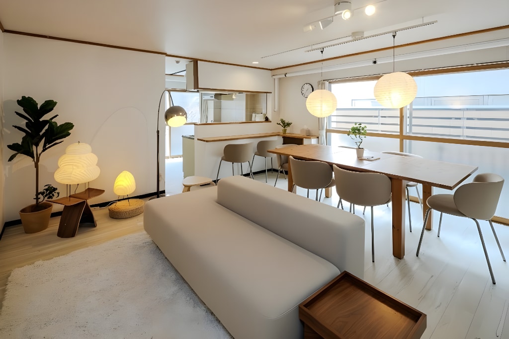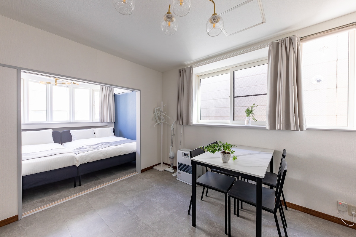 This apartment (75㎡ / 811 sqft) was fully renovated in winter 2025. It accommodates up to 8 guests and is perfect for families or groups. Just a 9-min walk to JR Shiroishi Station, and only 2 stops (16 min door-to-door) to JR Sapporo Station. It includes Wi-Fi, 4 double beds, A/C in the living room, a washer-dryer, a fully equipped kitchen, and 1 free parking space. The area has a 7-Eleven, drugstore, supermarket, and restaurants nearby—great for longer stays in a quiet neighborhood.