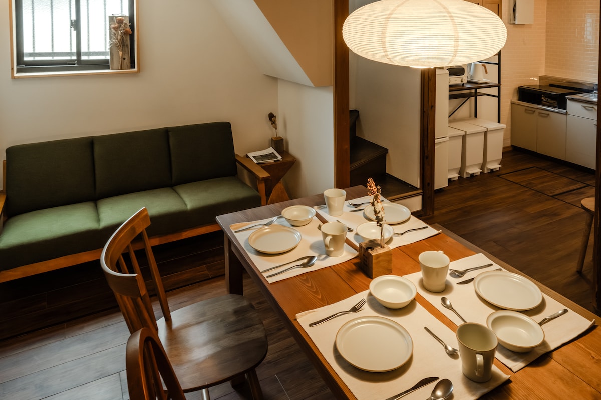 一栋97.2㎡的3LDK日式与大正浪漫风融合的整栋独立古民家。 这栋经过全面翻修的房屋拥有引人注目的室内设计,包括上镜的浴室空间和独特的装饰,可为您提供一个有趣而舒适的住宿环境。步行6分钟可达大阪地铁东三国站,乘坐地铁3站(约8分钟)直达梅田,约65分钟直达关西机场。 堺筋线直通通天阁、黑门市场等主要观光景点。 东三国是一个宁静的住宅区,同时享有都市生活的便利。 ◆ 特色 安静的住宅街区 3LDK格局,最多可容纳7人 便捷前往难波、关西机场、通天阁、黑门市场和京都 室内已全面翻新 步行2分钟到便利店,步行10分钟内有超市 厨房设备齐全 整栋出租,享有完全私密空间 无接触自助入住系统,轻松无忧 免费洗衣机(带烘干功能,附赠免费洗衣液) 洗漱品齐全:洗发水、护发素、沐浴露、浴巾、拖鞋、牙刷、化妆棉、棉签、剃须刀 可用日语、英语跟中文沟通 配备高速Wi-Fi