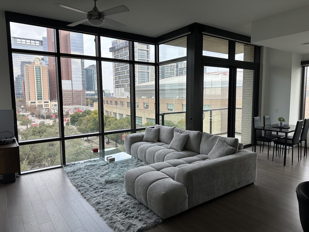 Luxe Downtown Hideaway 🌆✨ Stay in style just 10 mins from Toyota Center & Minute Maid Park. Our space offers a luxurious king bed, comfy pull-out couch, and a stocked mini-bar. Ideal for long-term stays with fast Wi-Fi, and in-unit washer/dryer. Hosted by a Superhost with 5-star reviews, enhanced cleaning, and seamless self-check-in. Perfect for business travelers, couples, or event-goers. Your perfect downtown retreat awaits!