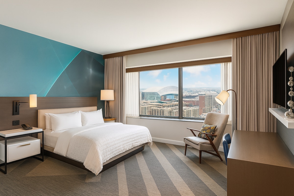 Make the most of your Houston visit from this centrally located hotel near dining, culture, and nightlife. This deluxe suite features a king bed and apartment-style layout perfect for extended stays. Designed for travelers who want extra room to relax.