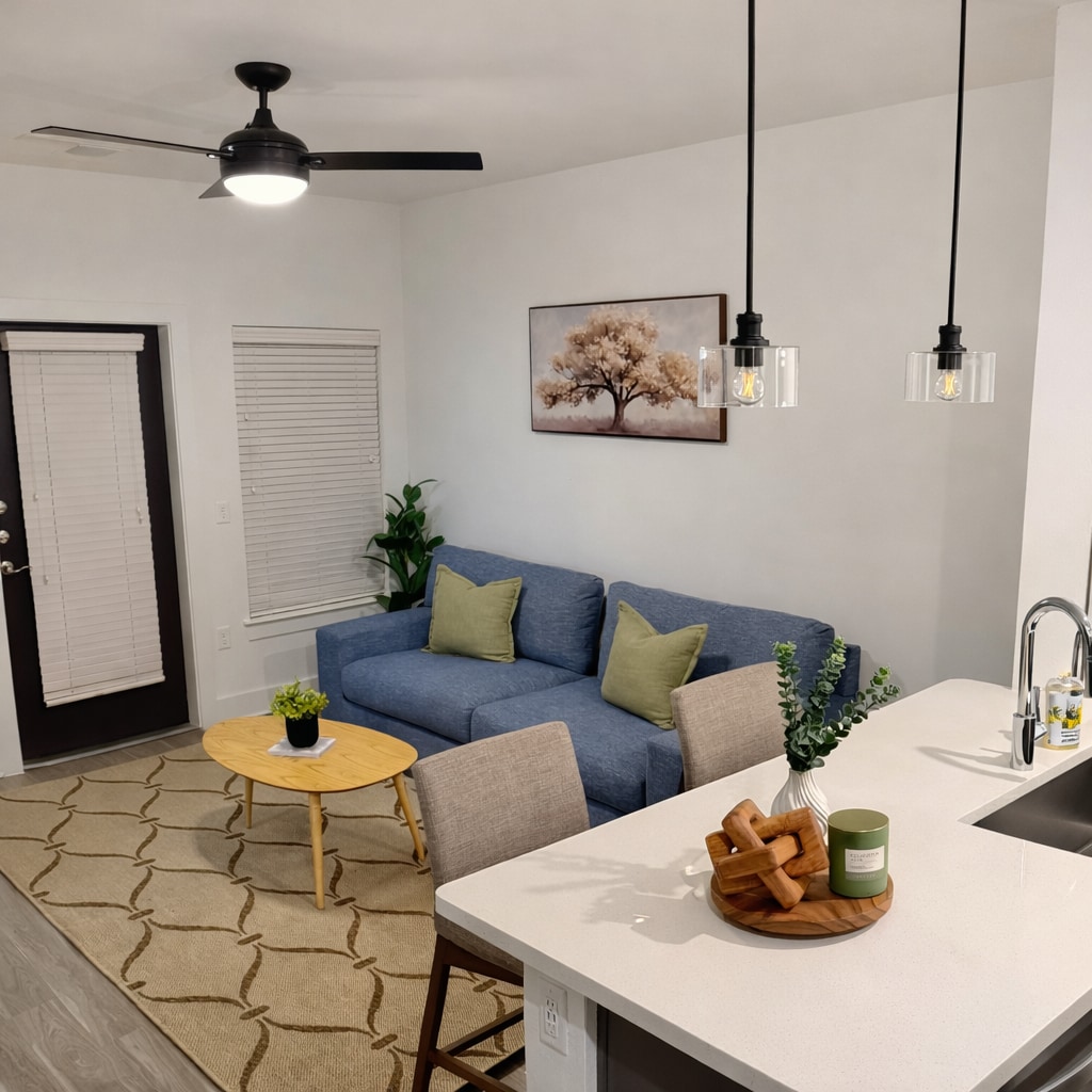 Serenity Luxe | Azure Suite is a clean, calm retreat near the new Universal Kids Resort in Frisco. Enjoy a plush king bed with fresh linens, a soothing blue living space, and a bright open layout. Guests love the spotless feel, fast Wi-Fi, fully equipped kitchen, and spa-clean bathroom with crisp towels. Close to shopping and dining yet quiet and relaxing, this stay is ideal for families, couples, business travelers, and longer stays. Easy check-in, great location, thoughtful design throughout.