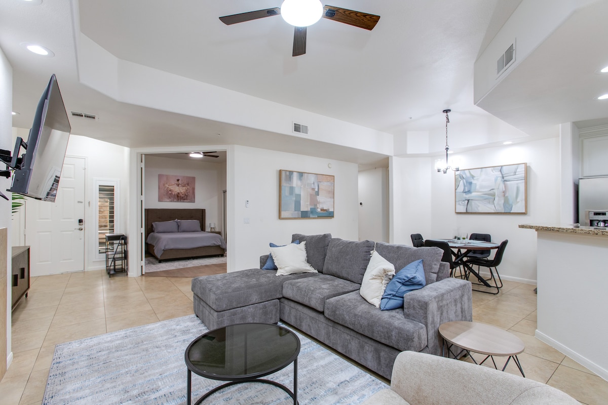 Welcome to your North Scottsdale retreat on Frank Lloyd Wright Blvd. Conveniently located near Spring Training, Barrett Jackson, and the Waste Management Open, with quick access to the Loop 101, State Farm Stadium, Chase Field, and ASU. This newly updated condo is just steps from the pool, fitness center, and BBQ area, offering a comfortable and convenient place to relax after a day exploring Scottsdale’s dining, golf, and year round events. Ideal for families, couples, and business travelers.