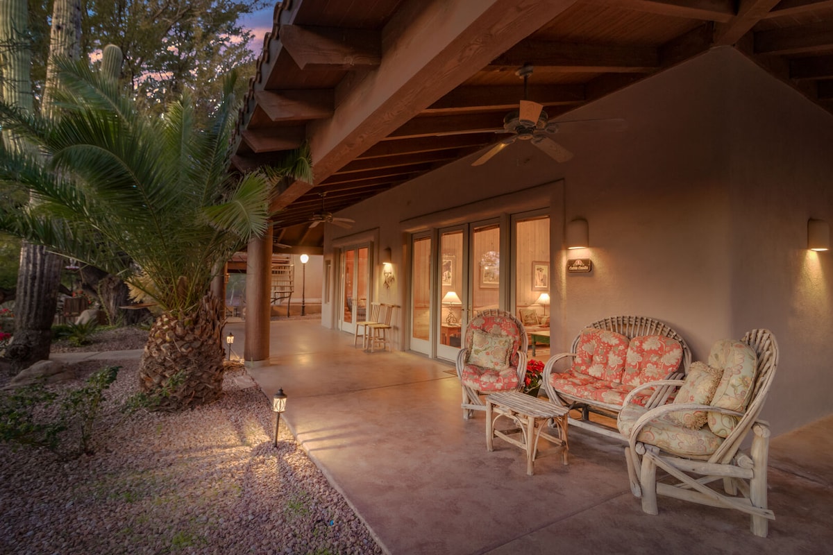 Private acreage - citrus on property (lemons/grapefruit/tangelos/mandarin oranges)- so help yourself! Desert landscaping with an abundance of rabbits, quail, doves, and lovebirds. Direct access to pool, outdoor ramada with BBQ and outdoor fireplace with seating. Enjoy the outdoor pizza oven - have a pizza party! Kitchen area with coffee /tea /microwave /refrigerator /toaster / two burner induction cook-top and sink - no oven. Laundry facilities on site. Limited street lighting provides amazing star gazing! Uncovered parking. Magazines (AZ Highways) and books on Arizona points of interest, hiking, fishing, skiing, climbing, etc. Five bikes (and helmets, locks, backpacks) available for use -- extensive bike trails in the area. Smoking is allowed outdoors away from common areas. Access to solar heated pool, hot tub, outdoor ramada/kitchen with BBQ and outdoor fireplace. Take advantage of bicycle trails with 5 bikes provided. Help yourself to citrus, herb garden and veggies! Trevor and Susan are very hospitable and will often invite you to participate in backyard gatherings - wood fired pizza in the outdoor ramada. However, mutual respect of privacy is appreciated - thanks! Centrally located - easy access to freeways, many golf courses, excellent restaurants, world class shopping -Kierland, Biltmore, Scottsdale Fashion Square. Close to all Scottsdale/Phoenix events: BARRET JACKSON and GOOD GUYS car shows, SPRING TRAINING! PHOENIX OPEN! ARABIAN HORSE SHOW! Casinos/shows/movie theaters/short drive to Fountain Hills/Mayo Clinic/Mayo Hospital. If you do not have a car...or would prefer not to drive...Uber is excellent! Five bicycles available for use - great bike path routes throughout Scottsdale. Many hiking trails to choose from - all close by. Bicycle paths - 5 bikes to use. Private access...gated side yard. Trevor is happy to share his extensive knowledge of Arizona. It is a quiet acreage neighborhood with desert wildlife, including quail and roadrunners, and is excellent for star gazing and bird watching. There is easy access to all Scottsdale sporting events, restaurants, shopping, casinos, and desert hiking. We use Uber and Lyft for valley travel convenience. Five bicycles on property for guest use. Scottsdale has excellent bike trails.