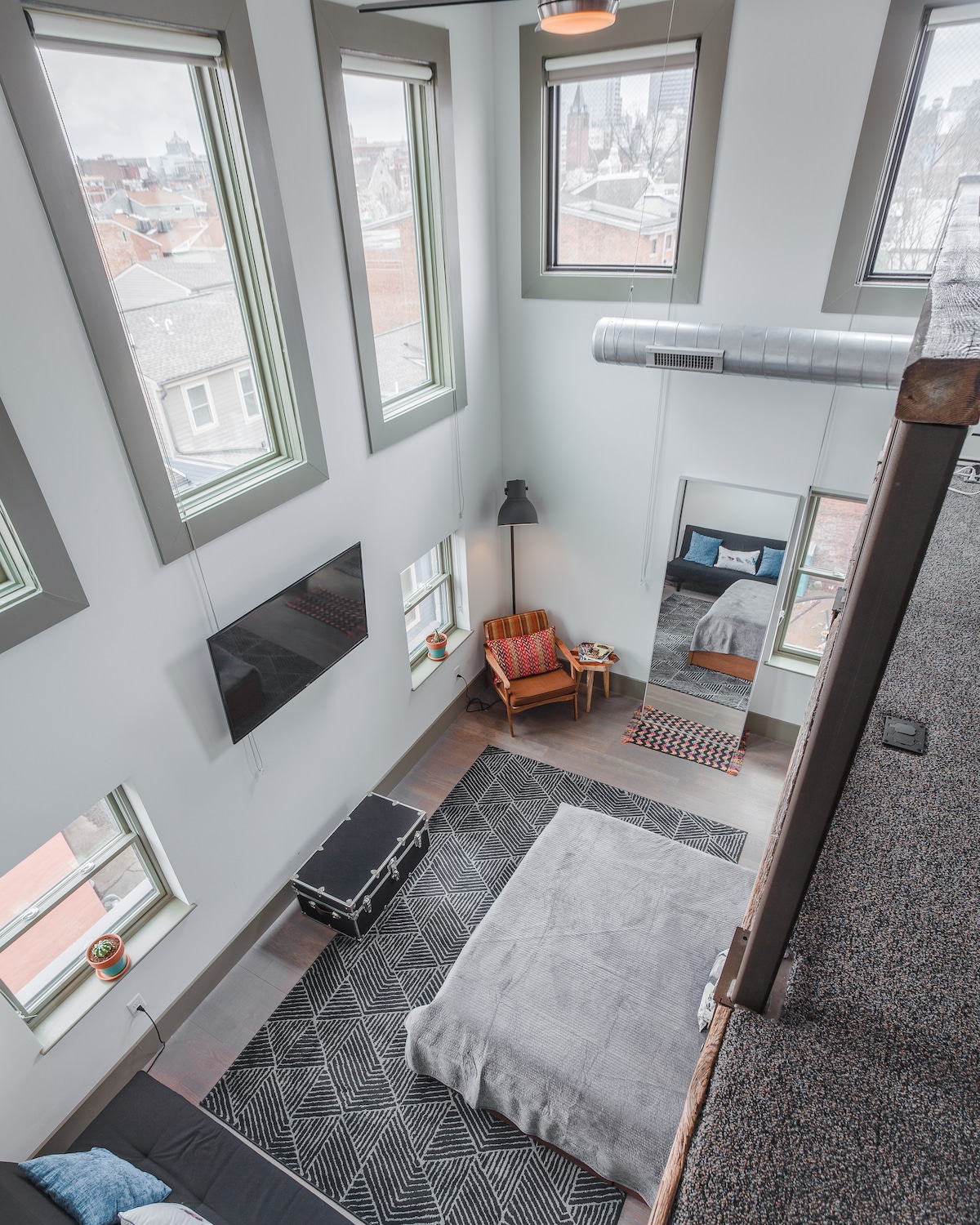 Loft style, street level unit across the street from historic Findlay Market. Stop 12 on the *FREE* Cincinnati Bell Connector. Sleeps 6. 1 king bed in the sleeping loft, 1 full size Murphy Bed, and 1 queen sleeper sofa, perfect for families! Walking distance to all the best spots in OTR, or take advantage of the full kitchen and shopping at Findlay Market. A wall of windows fills the unit with natural light as Solar Tint maintains privacy and 3M Film ensures safety.