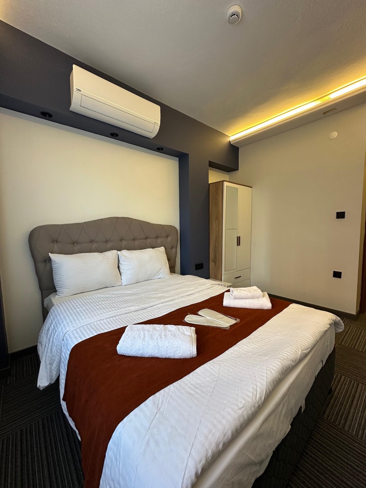 Our hotel features 25 m² rooms that are comfortably and elegantly furnished. You can choose between a double bed or two single beds in our rooms. It is just a 5-minute drive or a 20-minute walk to the city center The airport is a 7-minute drive away The bus station can be reached in 4 minutes by car Trabzon Forum Mall is 2-minute drive away or 10-minute walk We look forward to providing our guests with a comfortable and easily accessible accommodation experience