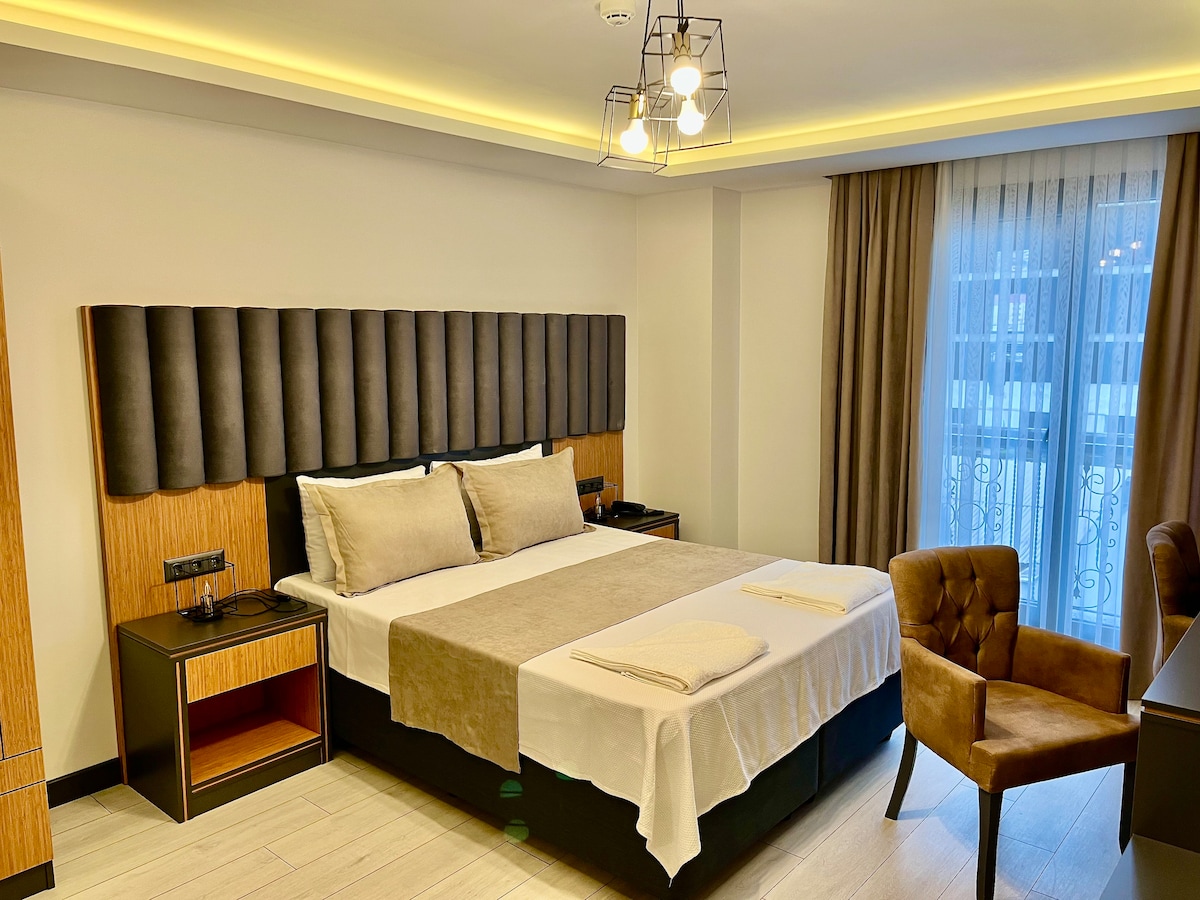 Our hotel features 25 m² rooms that are comfortably and elegantly furnished. You can choose between a double bed or two single beds in our rooms. It is just a 5-minute drive or a 20-minute walk to the city center The airport is a 7-minute drive away The bus station can be reached in 4 minutes by car Trabzon Forum Mall is 2-minute drive away or 10-minute walk We look forward to providing our guests with a comfortable and easily accessible accommodation experience
