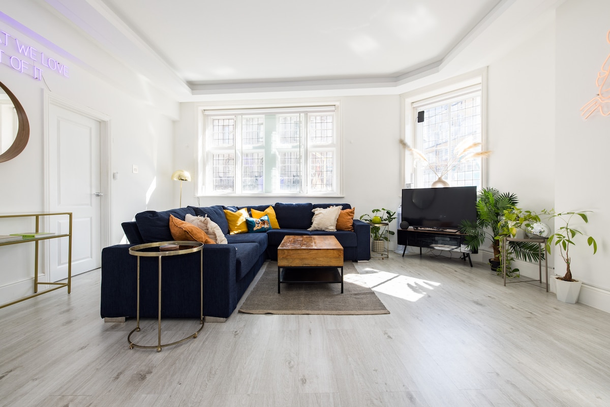 I am pleased to present you with my unique two-bedroom home on Whitehall SW1! With floor-to-ceiling windows, this spacious and stylish home offers a one-of-a-kind experience for families, friends, or solo travelers. Just a stone's throw from Trafalgar Square, it's the perfect hub for sightseeing and enjoyment: Covent Garden is a 10-minute walk, Big Ben is 10 minutes away, London Eye is a 14-minute stroll. Experience London like never before from this unbeatable location!