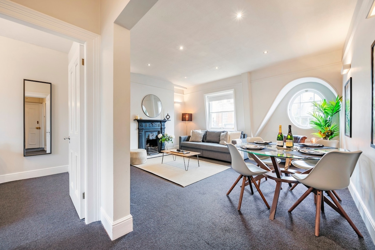 Immerse yourself in the historic charm of this newly renovated studio apartment with over two centuries of history. Secondary glazing ensures tranquility, while your own fully-equipped kitchenette and private luxury bathroom allow you to unwind and relax. Location couldn't be better. Off a secluded side street by Leicester Square, just steps from Soho, The West End, and Trafalgar Square, and with excellent transport links – book with us and maximise your time in London.
