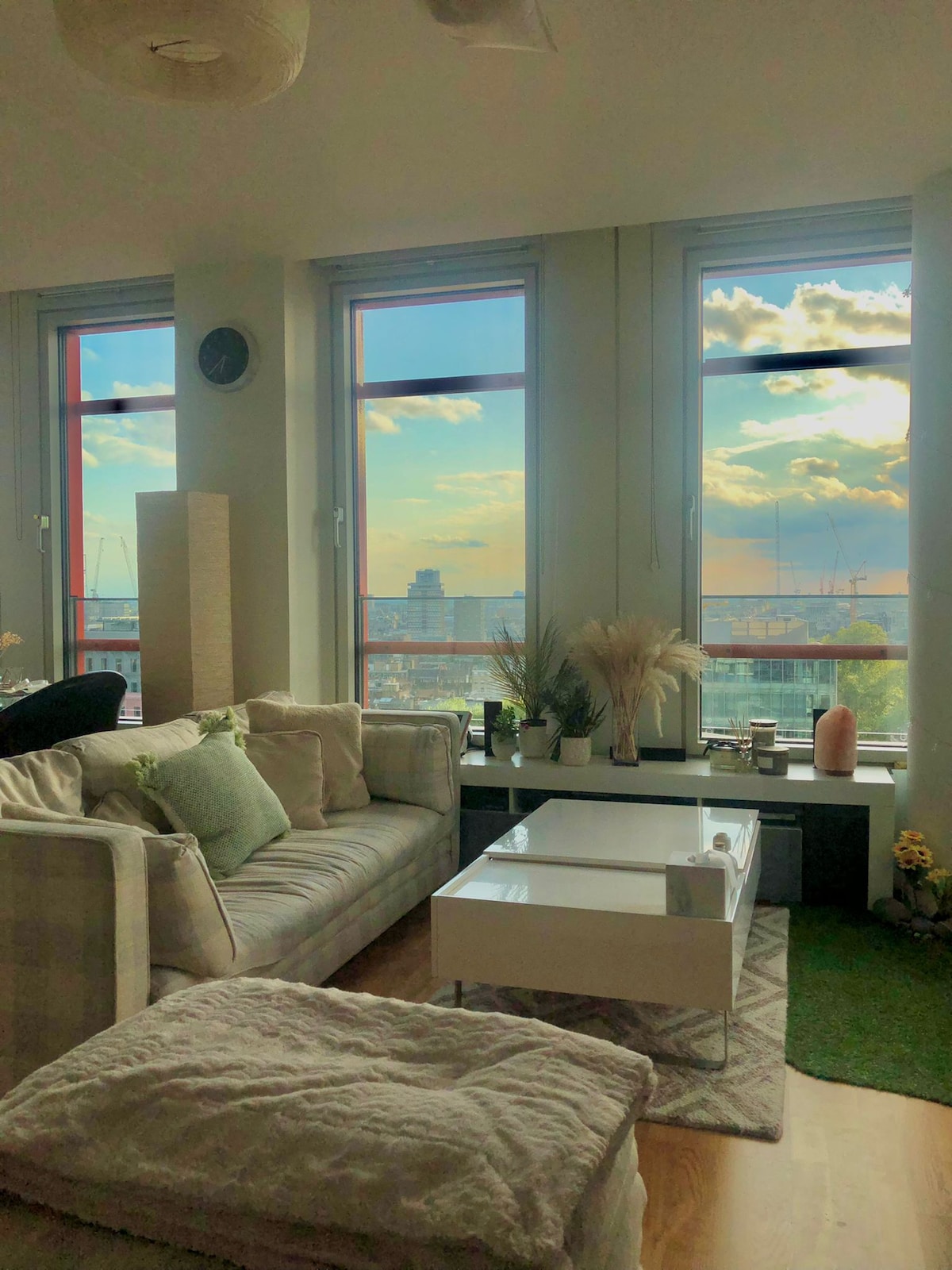 Luxurious, modern and spacious flat, located in Battersea, 7mins walk to Battersea Power Station, 3 mins walk to Battersea Park station The space is full of light and boasts a large terrace with outstanding views of the city and is perfect for couples, solo or business travellers. The flat is located on the 15th floor of a secured block. It consists of a double bedroom with an en-suite bathroom and a spacious living room with a sofa. There is additional bathroom with a bathtub.