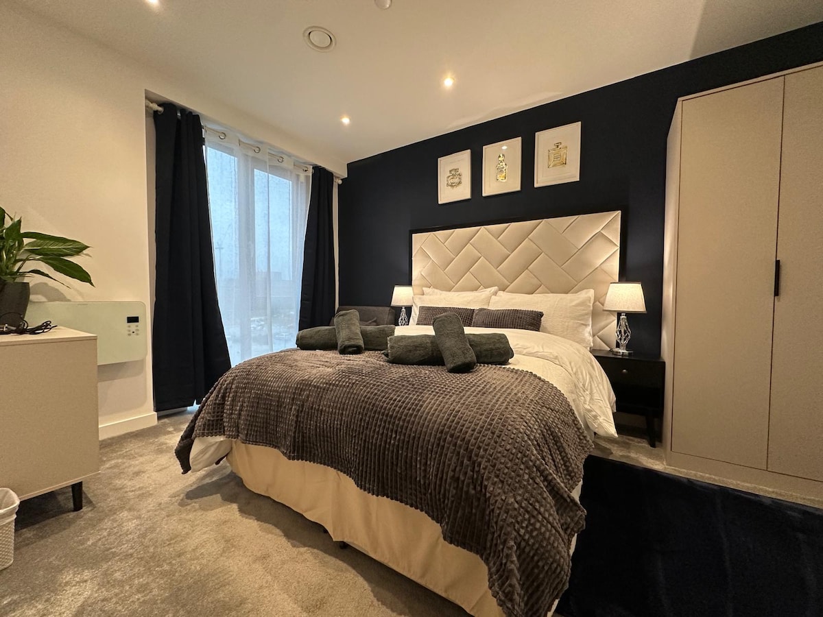 Stylish 2-bed apartment with stunning water views and free secure parking. Just a short walk to Old Trafford Stadium, O2 Victoria Warehouse, and Emirates Old Trafford. Enjoy a bright open-plan living area, balcony, smart TV, fast Wi-Fi, and two comfy double beds. Close to MediaCityUK, Deansgate, and Trafford Centre with great transport links. Ideal for getaways, work trips, or match days—comfort and convenience in one spot!