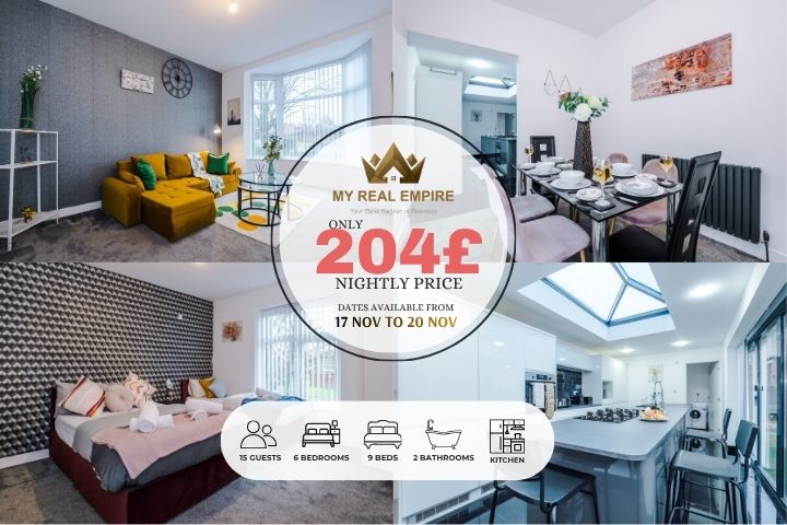 Welcome to your home away from home in Rochdale, Greater Manchester Are you a contractor working on a project, a family, or a team needing an Extended Stay? ✅Highlights Spacious 6BR – sleeps up to 15 Perfect for contractors, teams, or relocations Fully equipped kitchen & laundry Free parking with CCTV Fast WiFi & smart workspace Weekly cleaning available 📆 Ideal for Contractor & corporate teams Relocations and insurance stays Families between moves Long-term professionals working in the area