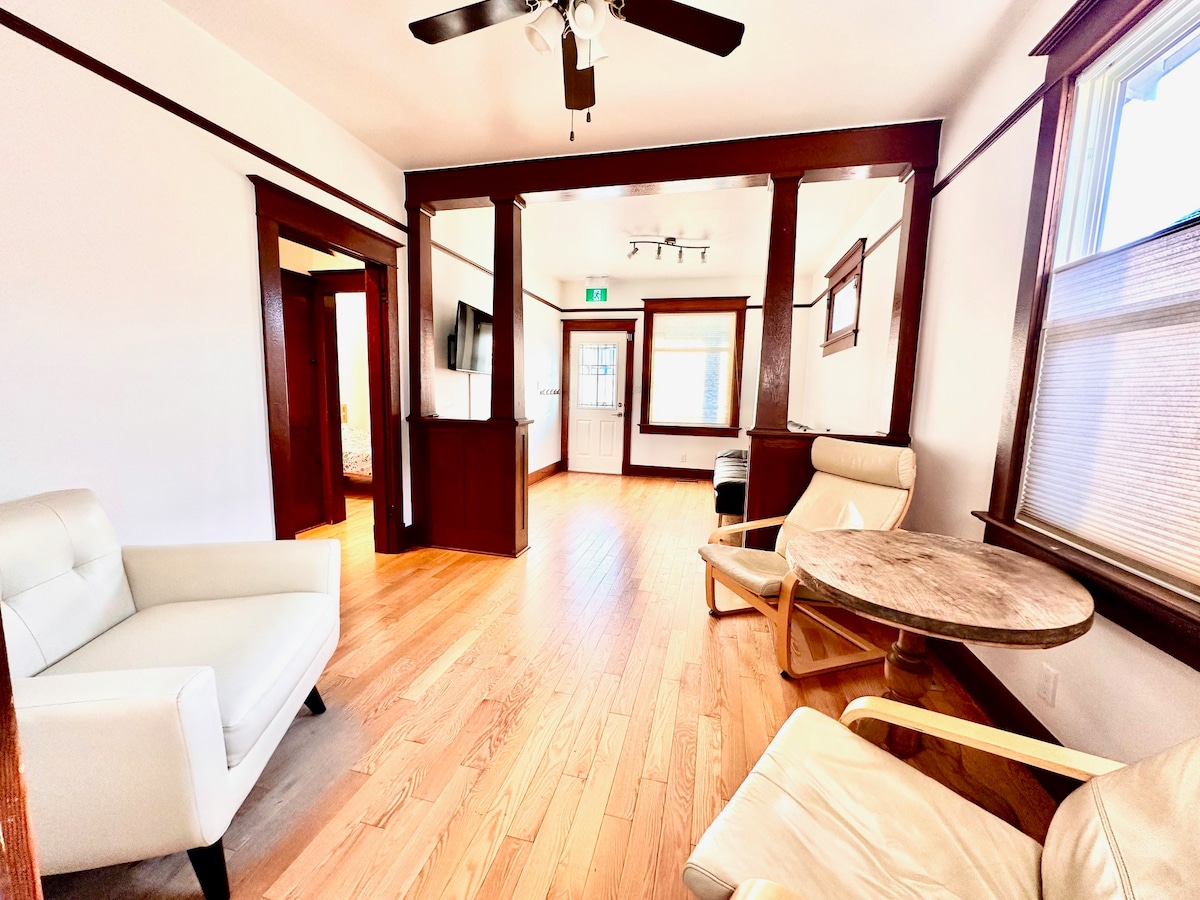 Relax in our bright spacious upper suite in a charming heritage home, offering the peace and privacy of a quiet cabin—right in downtown Castlegar. Wake up to complimentary coffee, bread, eggs, or oatmeal, then enjoy the morning sunrise and mountain views of Mt Sentinel and the Bonington Range in the warmth of the sunroom. Located in the center of the Kootenays, between Red Mountain, Whitewater and endless backcountry winter adventures. Comfort, charm, and beautiful scenery all in one stay.