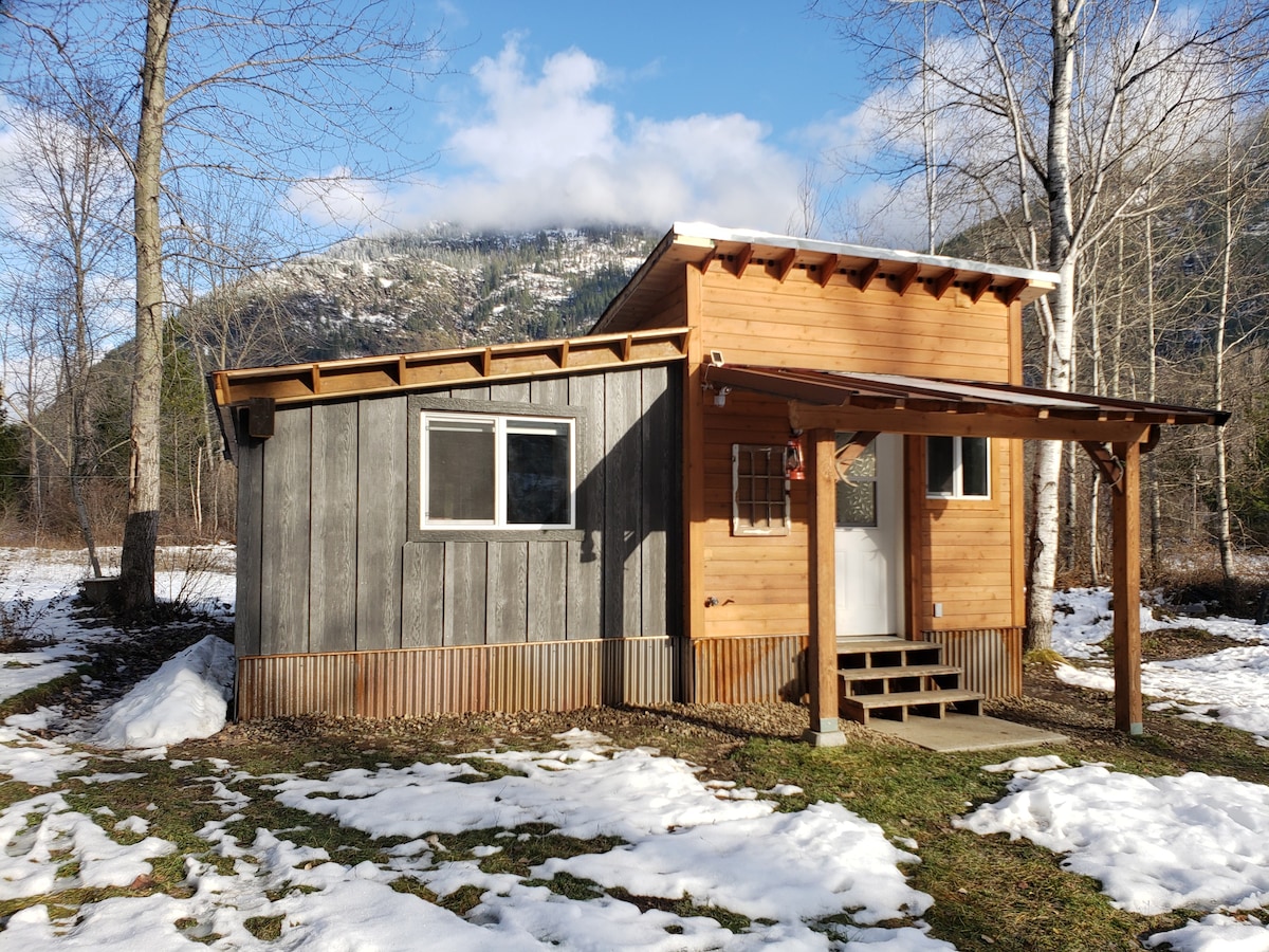 The Casita is a cozy tiny home. Located just outside Salmo on a 54 acre property with private trails. Easy drive to Nelson, Whitewater, Castlegar, Fruitvale, Trail and Kootenay Pass. Perfect for a single person or couple as a base for your next Kootenay adventure. Features one bedroom with Queen size bed, kitchen with 2 burner induction stovetop, toaster oven and bar fridge. *Bathroom located a short distance from Casita (outdoor entrance attached to our home).