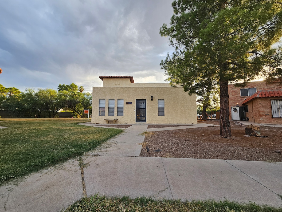 Centrally located right by the University of Arizona, this newly renovated 1926 house is close to University Boulevard, Downtown, PCC, and 4th Avenue. The property is a duplex with the back unit available for Airbnb guests. The front unit is occupied by other tenants. Parking options: - 2 spots on an elevated area in the back yard behind a 7-foot tall steel gate. - On the drive in front of the steel gate for tall/low profile car. - On-street parking with a permit provided to you upon request