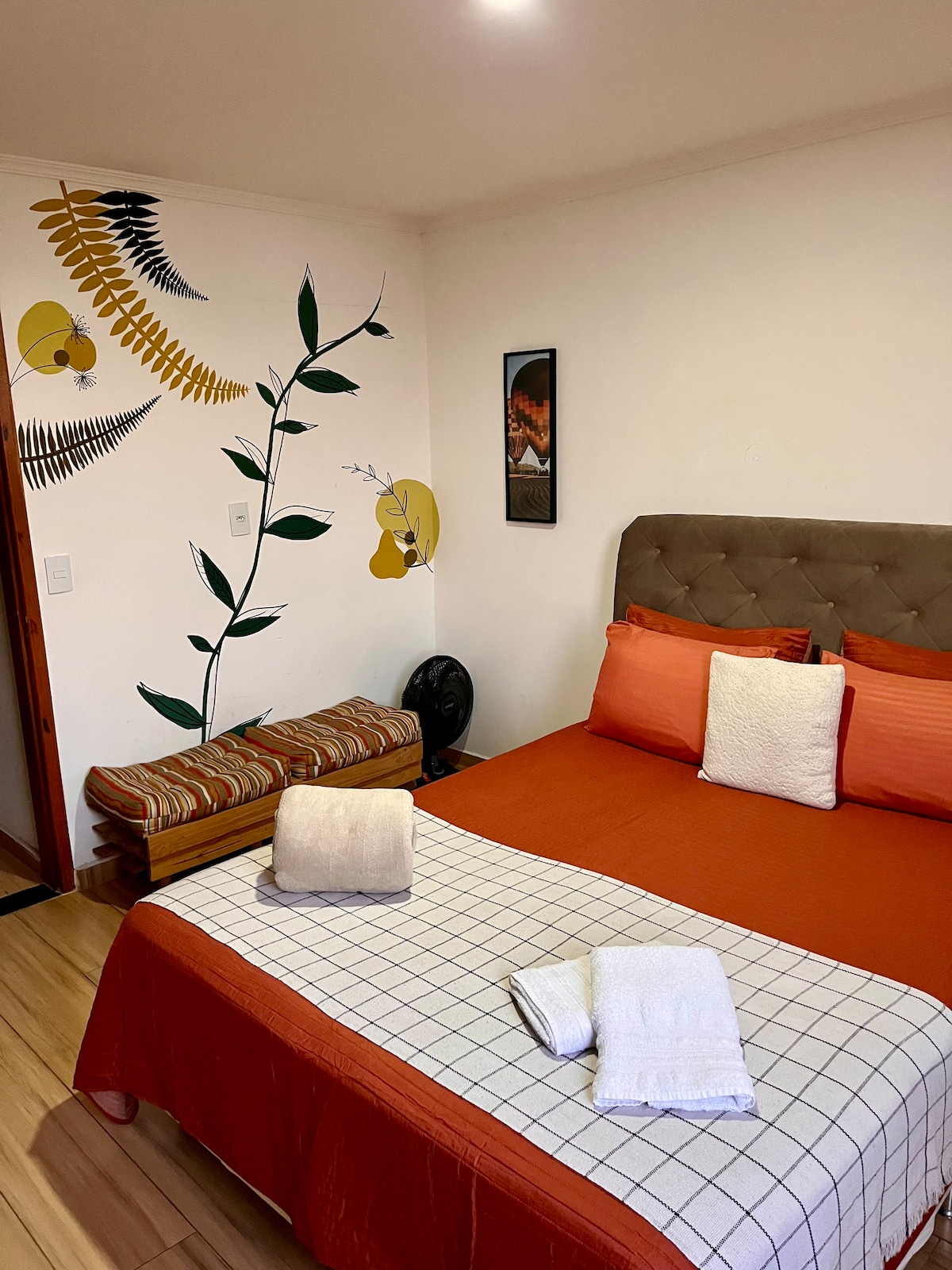 Sua família vai estar perto de tudo ao ficar neste lugar bem-localizado, 5min a pé do centro de São Lourenço, porém em rua tranquila. Quarto com cama de casal e possibilidade de colocar um colchão de solteiro. Sala com sofá-cama, televisão, mesa com dois bancos para fazerem as refeições. A cozinha é equipada de microondas, cafeteira, panela elétrica (grande), liquidificador, frigobar e sanduicheira. (Não temos fogão!) Banheiro novo, todo reformado. Wifi de 320MB disponível e televisão.