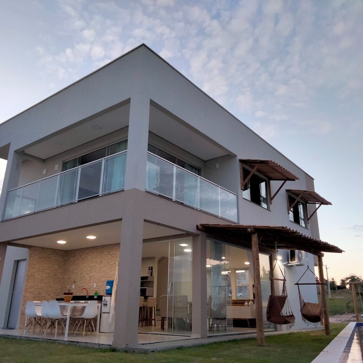 Sublime villa de 120m2 avec piscine privée de 25 mètres. idéales 10 personnes + 1 bébé, mais possible jusqu'à 14 grâce à 4 hamacs La maison dispose de 5 chambres dont une suite parentale, dans le calme et la tranquillité tout étant très proche du centre ville, à 10 minutes des plages parmis les plus belles du Brésil (Flecheiras, mundao...). la maison est située dans une résidence fermée et sécurisée, située au bord d'un lac, propose plusieurs activités (piscines...) ainsi que des restaurants.