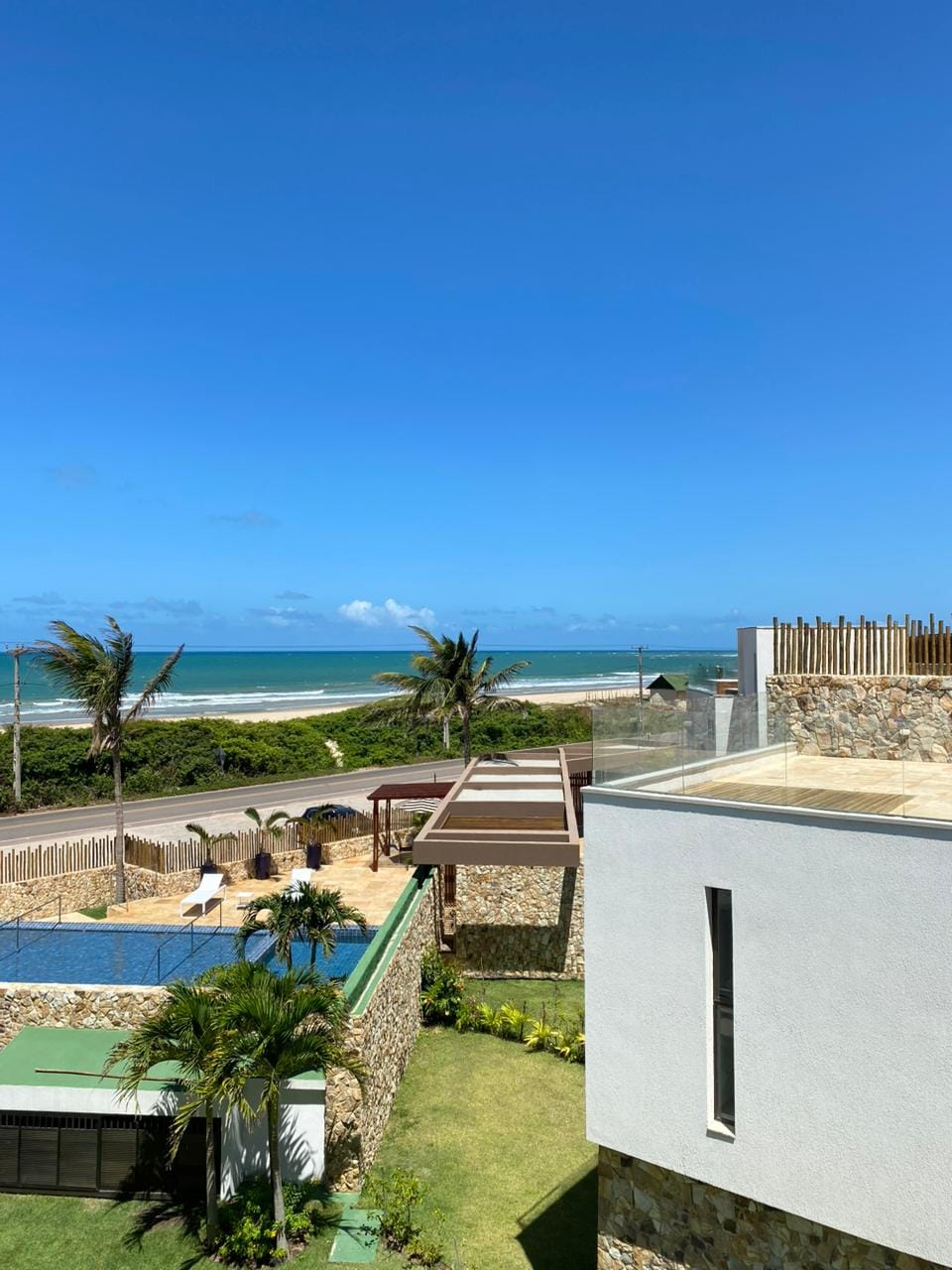 Casa beira-mar localizada na praia de Guajiru-Trairi. Conta com quatro quartos, sendo duas suítes. Cozinha completa. Sala de estar. Ampla varanda. Deck com churrasqueira. Amplo estacionamento. Terreno com 2 mil metros quadrados, na rua principal, do lado da pracinha do Guajiru e de frente para o mar. A área da piscina e do estacionamento é compartilhada com outros hóspedes.