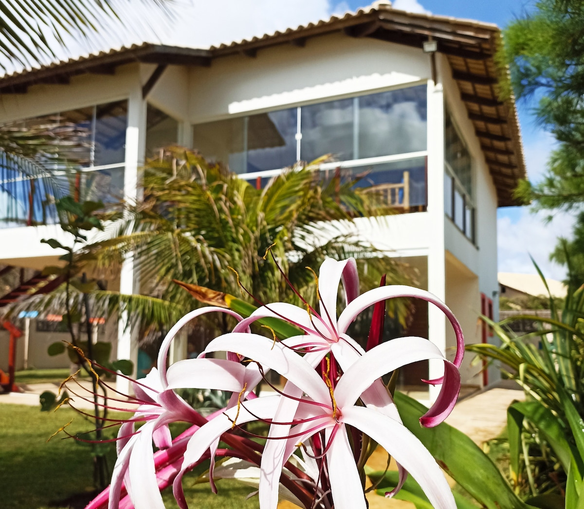 A beautiful beach house with free WiFi is available for short or long-term rent. The house is located in one of the prettiest villages in Ceará and is within walking distance from shops, markets, pharmacies and restaurants. Located right on the seafront and offers direct access to the beach and unbeatable sea views. Ideal for families and groups of friends who want to spend some days on the beach or celebrate a wedding or a child naming ceremony. Private parties are welcome.