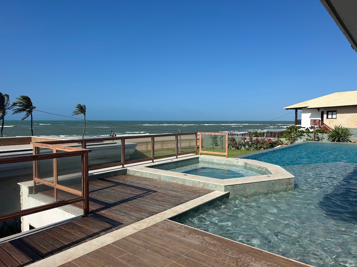 Desperte todos os dias com o som das ondas e a brisa do mar .Uma verdadeira joia à beira-mar, ideal para quem busca conforto, privacidade, sofisticação e conexão com a natureza. 4 suítes espaçosas com ar-condicionado, roupas de cama e banho Sala ampla com pé direito duplo, Smart TV e Wi-Fi de alta velocidade Cozinha completa Varanda Acesso direto à praia Estacionamento grátis 3 veículos Condomínio fechado com segurança 24h Serviço de limpeza e cozinheira disponível sob demanda.