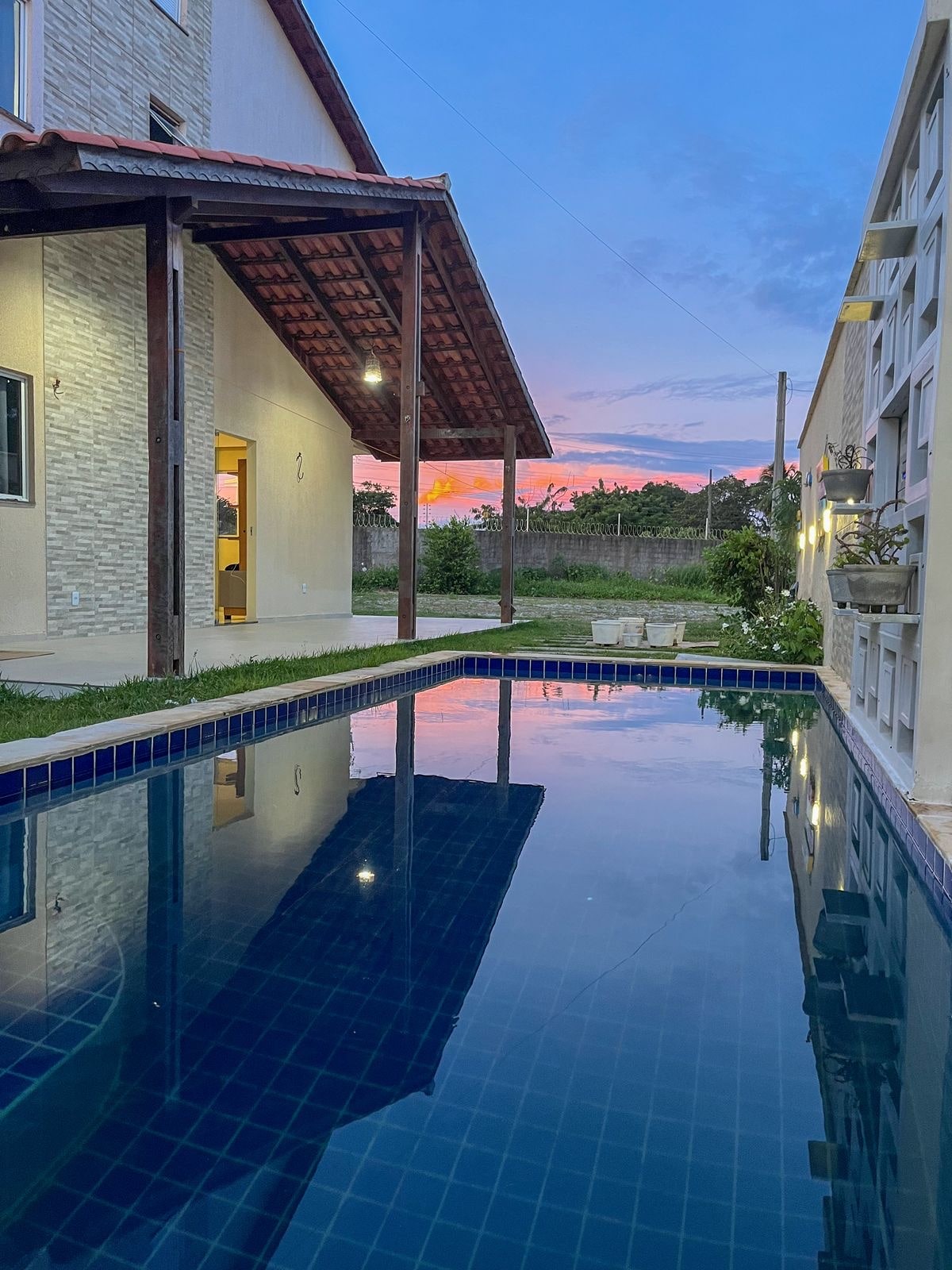 Sublime villa de 120m2 avec piscine privée de 25 mètres. idéales 10 personnes + 1 bébé, mais possible jusqu'à 14 grâce à 4 hamacs La maison dispose de 5 chambres dont une suite parentale, dans le calme et la tranquillité tout étant très proche du centre ville, à 10 minutes des plages parmis les plus belles du Brésil (Flecheiras, mundao...). la maison est située dans une résidence fermée et sécurisée, située au bord d'un lac, propose plusieurs activités (piscines...) ainsi que des restaurants.